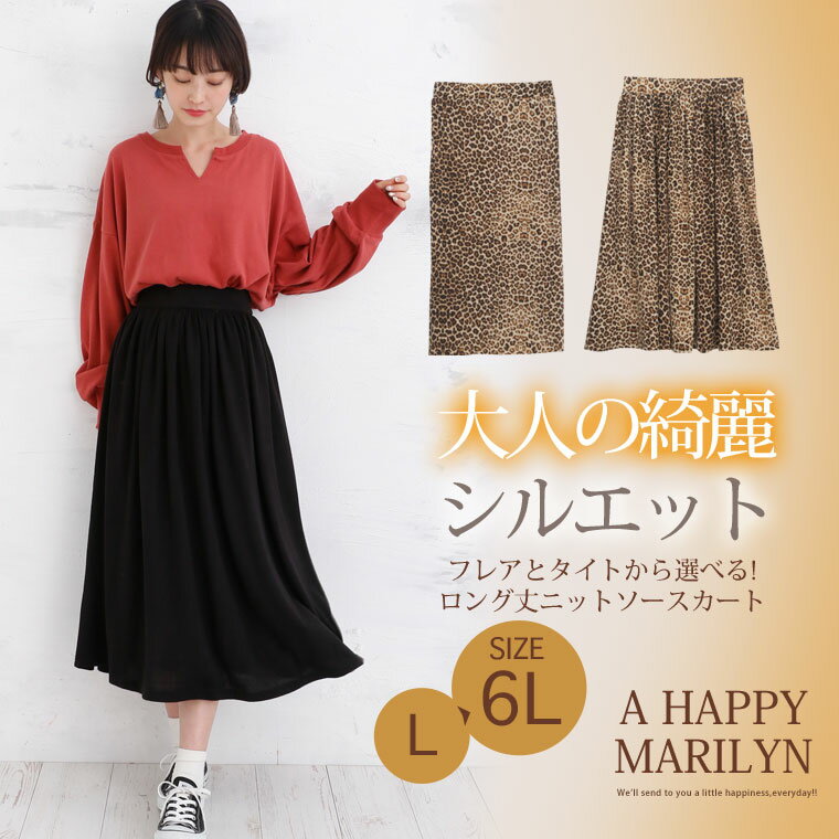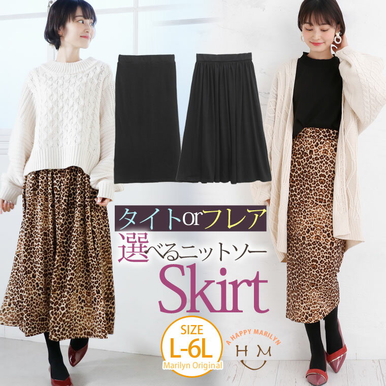 大きいサイズ レディース スカート | 新色追加!! フレアとタイトから選べる!! レオパード ロング丈 ニットソースカート _ オリジナル ボトムス フレアスカート フレアースカート LL 3L 4L 5L 6L お腹 太もも お尻 腰周り [Y422005/Y422006] OMMBT 春 春物 春服
